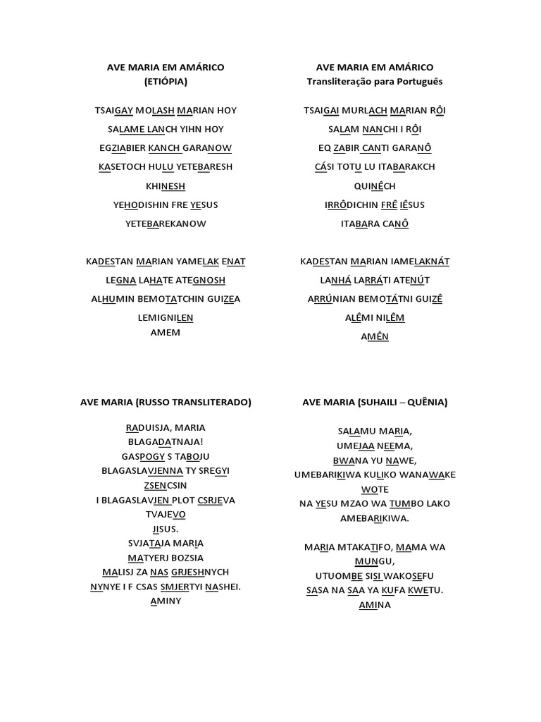 Orando el avemaría en Idiomas.