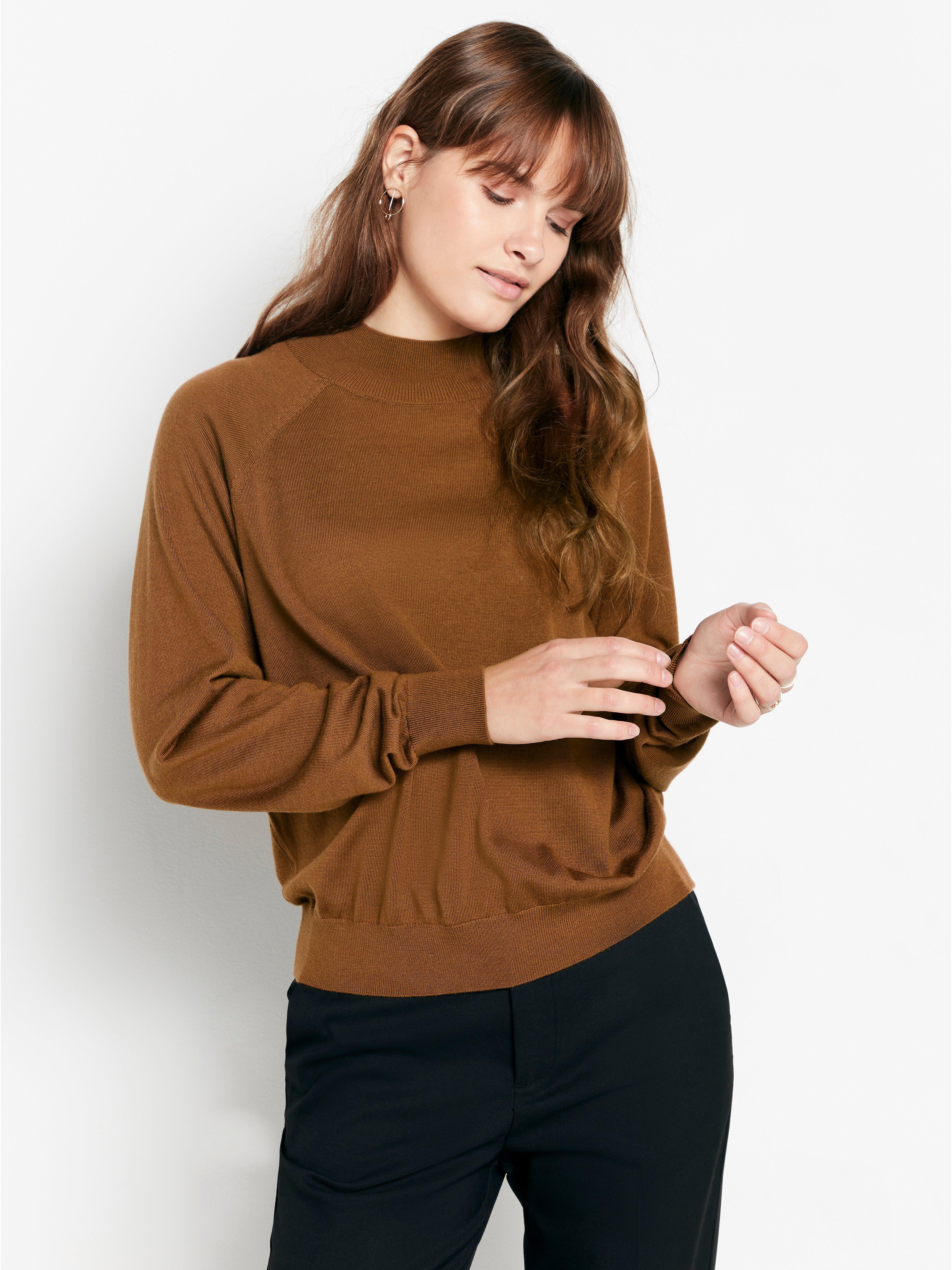We use cookies to give you the best customer experience possible. If you continue to use our website we will assume you are happy to receive cookies from us and our partners. Rosie merino sweater has a straight fit with a high turtle neck.